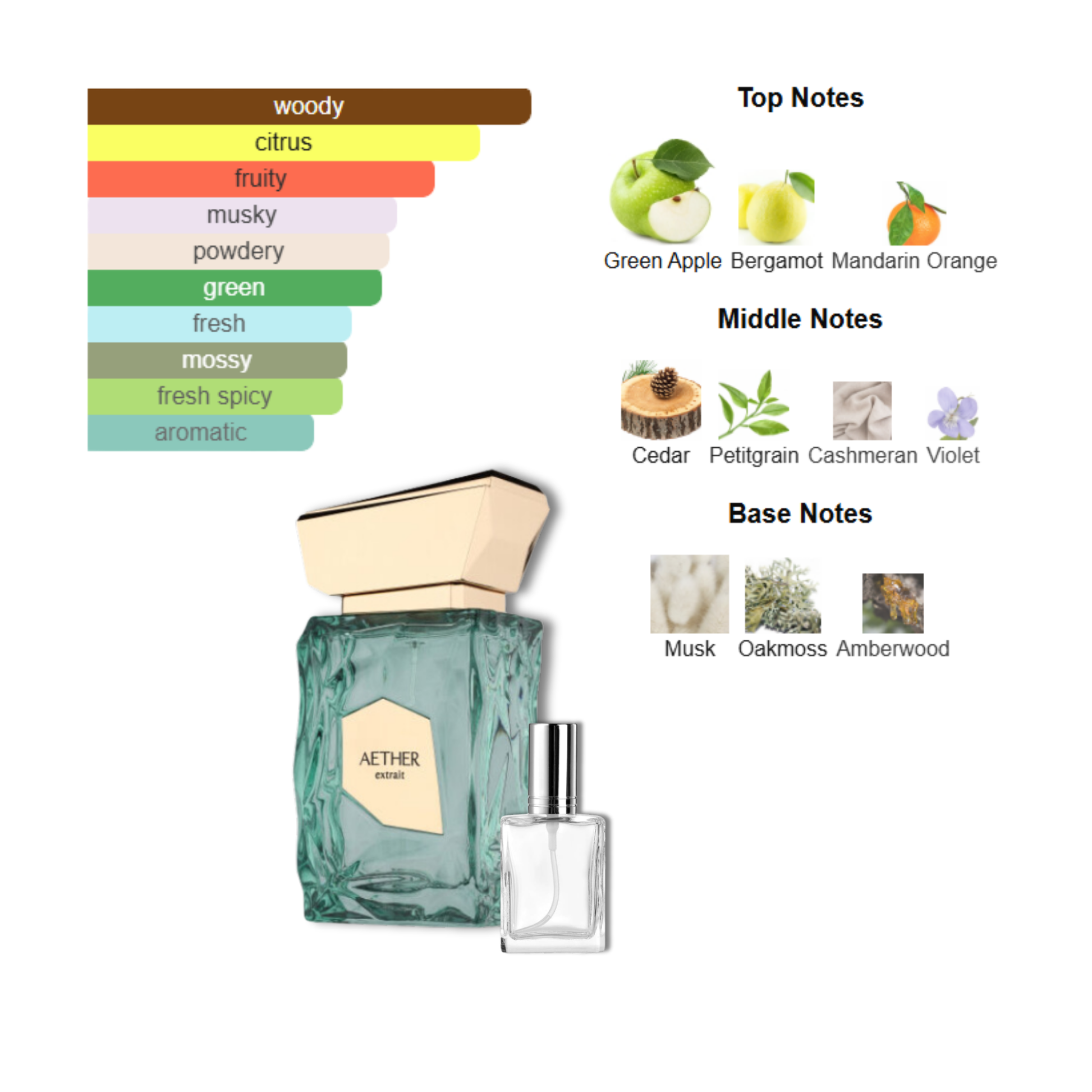 Aether shines brightest in the spring and summer—its fresh green apple and citrus accords feel crisp and uplifting in warm weather. It also works well during cooler transitional days (late spring, early fall), when the woody base adds a comforting dry-down.