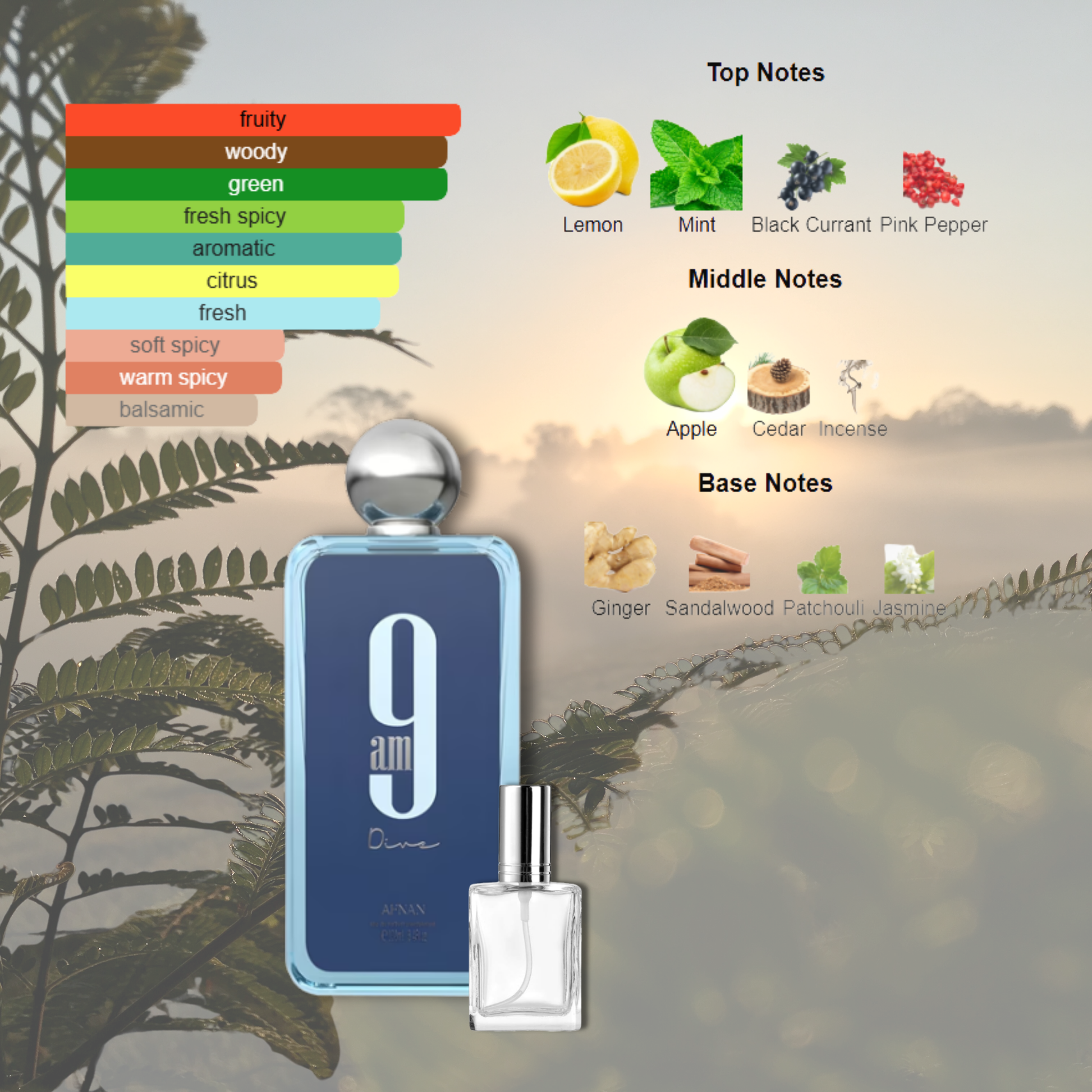 Start your day—or freshen up your evening—with 9 AM Dive by Afnan, a vibrant unisex aquatic-fresh scent that captures the energy of a brisk morning plunge into crystal-clear waters.